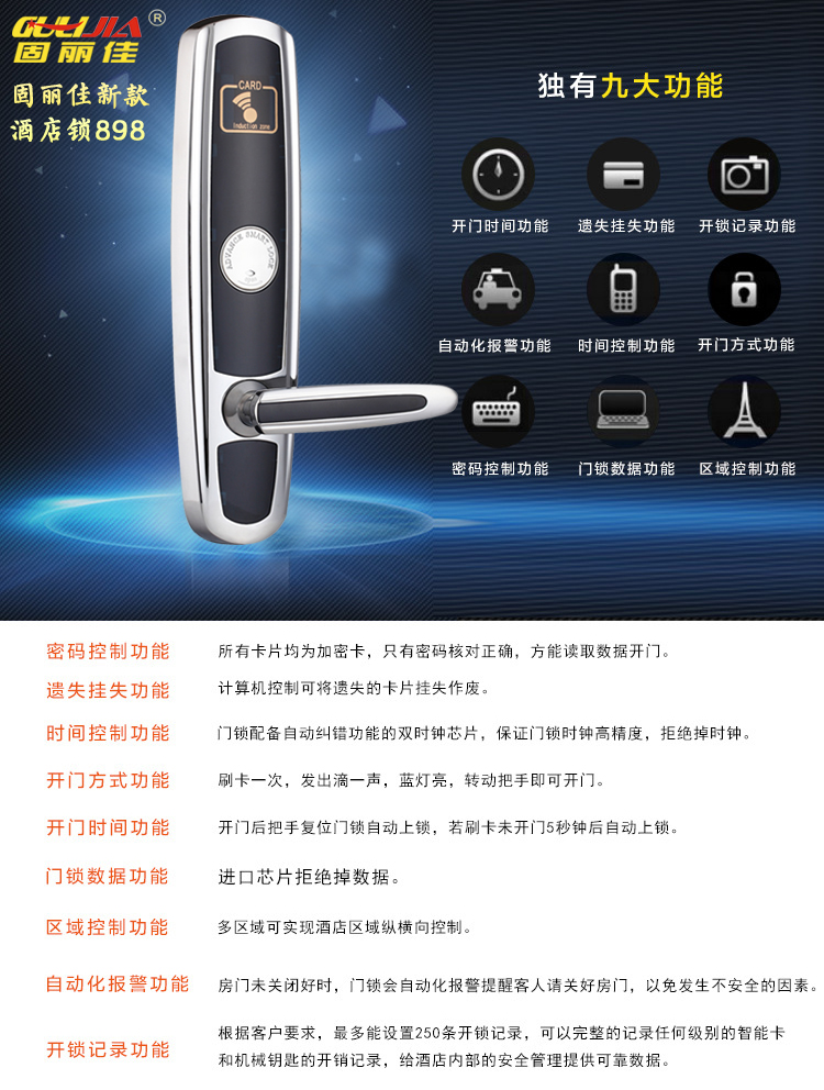 固麗佳智能酒店鎖優(yōu)勢特點: